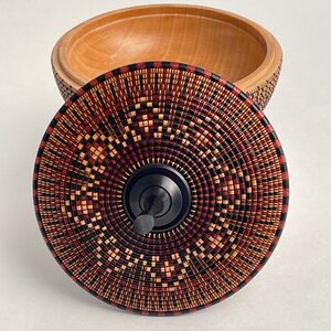 Original wood block had 14% MC, and after roughing without anchorseal, it continued to lose weight over the next 7 months.....until stabilized. 8 1/4" x 3 1/8", 1lb 3.9oz. Sanded to 600gt, Danish oil natural, Beall 3-step buffed. This is a very rare burl with this kind of unique voids, and I've never seen anything quite like it before, and not since then either. The voids tore up a lot of sandpaper, but the results were well worth it. Finished on 8/2/24 and sold for $525 on 9/17/24.