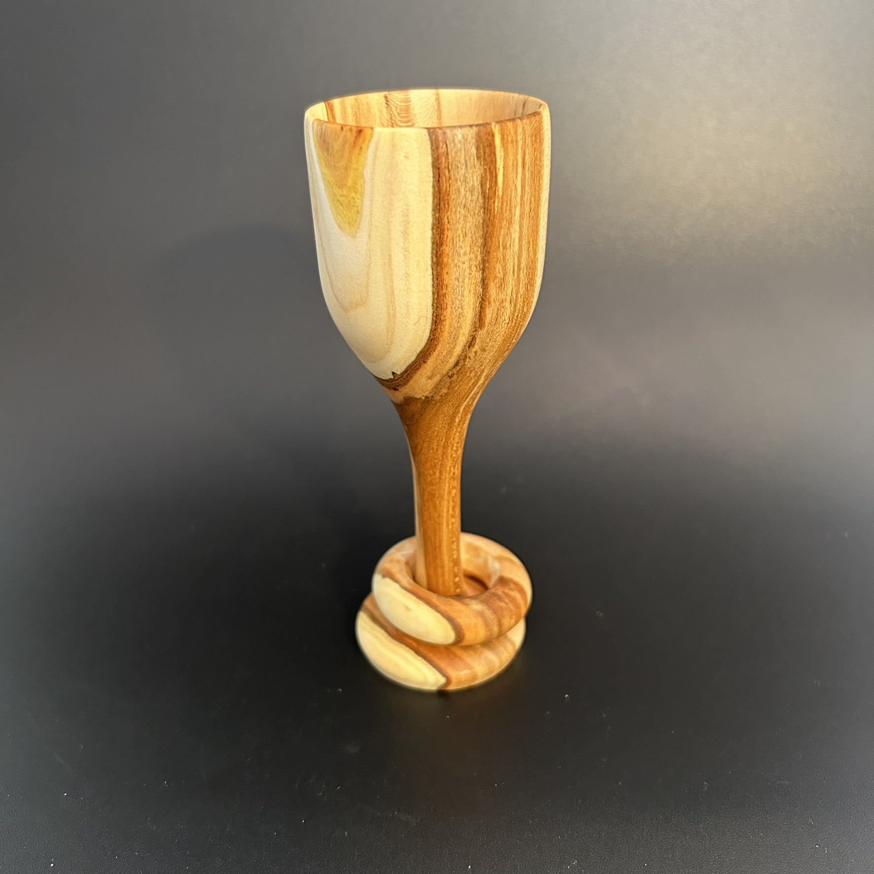 6” tall x 2” in diameter, from peach wood I salvaged from a local community garden whose trees were not producing well. The garden coordinators asked me to take the trees down in exchange for as much of the wood as I wanted to keep. I’m making several goblets, bowls and NE bowls for them as keepsakes from the garden.