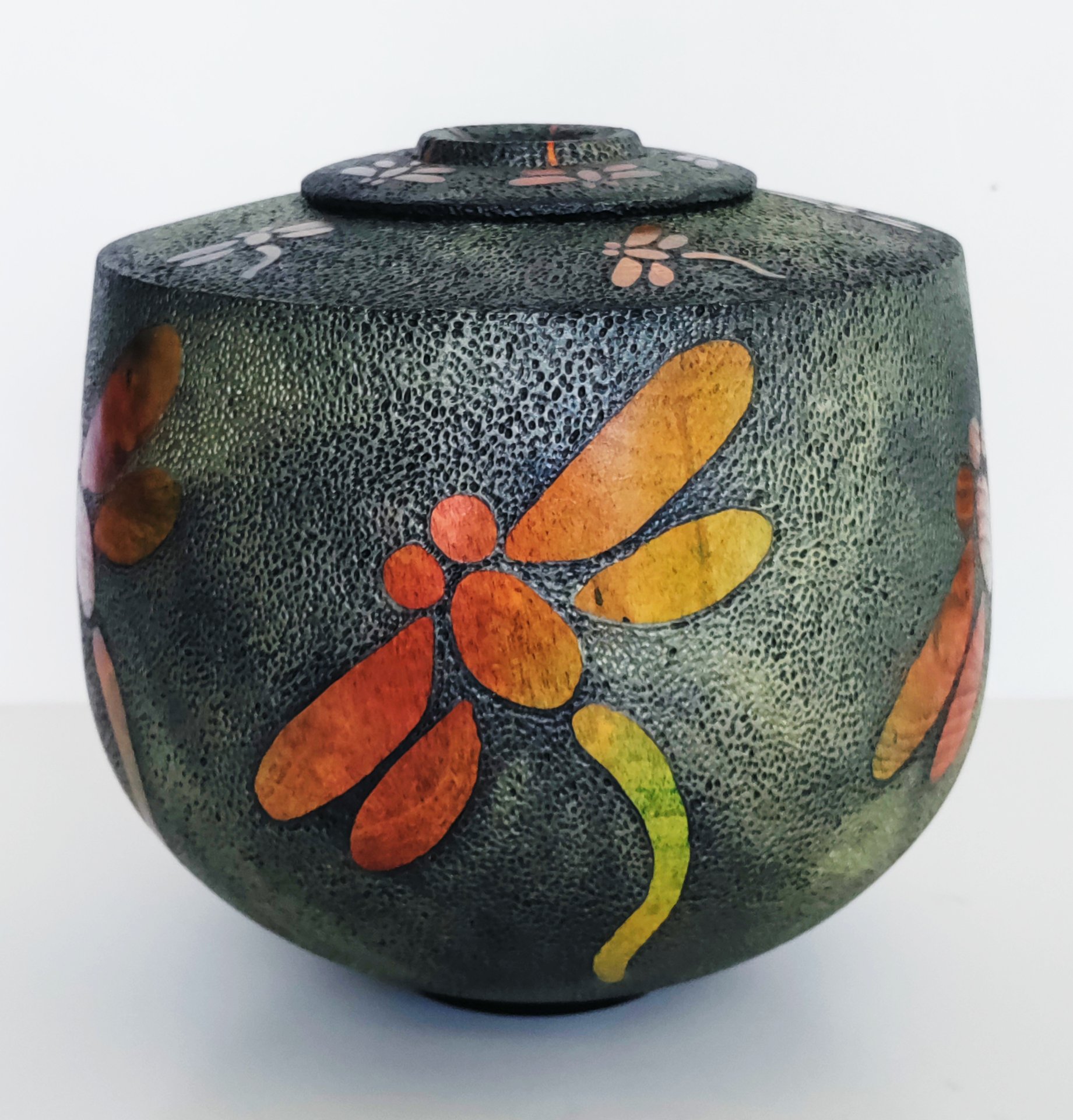 Turned birch, dyed (multiple layers), textured and painted (multiple layers)