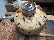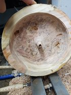 I have this awesome Cherry Burl with amazing colors thru it and in one spot I had a decent sized hole. Now this bowl is in the very beginning stages it hasn't even been hollowed out yet so I decided to buy JB WELD epoxy from HD. My reason behind this is because I want to keep the bowl at 10" round because like I stated the colors are awesome. So far it seems to be working great. Has anyone else used this product and what were there results? Here is a quick photo of my handy work. Probably should have taken a before photo. Here are some cracks I filled w/ black starbond ca glue. Look at those colors. Anyone got an idea of what type of finish I should use? I was thinking of just shellac. I am not sure what it is but I am just finding everything about this project just incredible as I work on it.