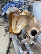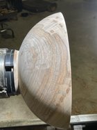 Gotcha! I thought you were removing the foot in the first picture instead of shaping the outside. When I thought it was a jam chuck I was impressed with how well it was mounted. Jam chucks give me a hard time.Hey, Charles.......I'm not using a jam chuck......I use a center screw faceplate for this step.....and then transfer the bowl to a Oneway Stronghold chuck to rough out the interior...